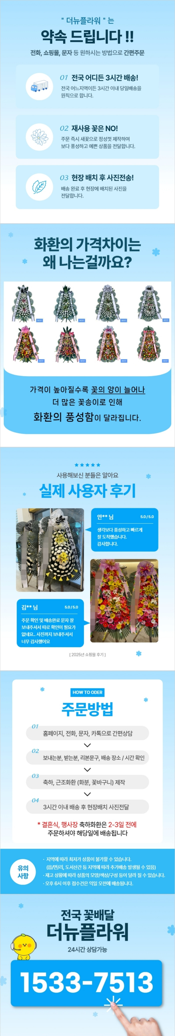 | 품질 보장 | 최신의 신선한 꽃을 사용하여 전시 시에도 아름다움을 유지합니다. |